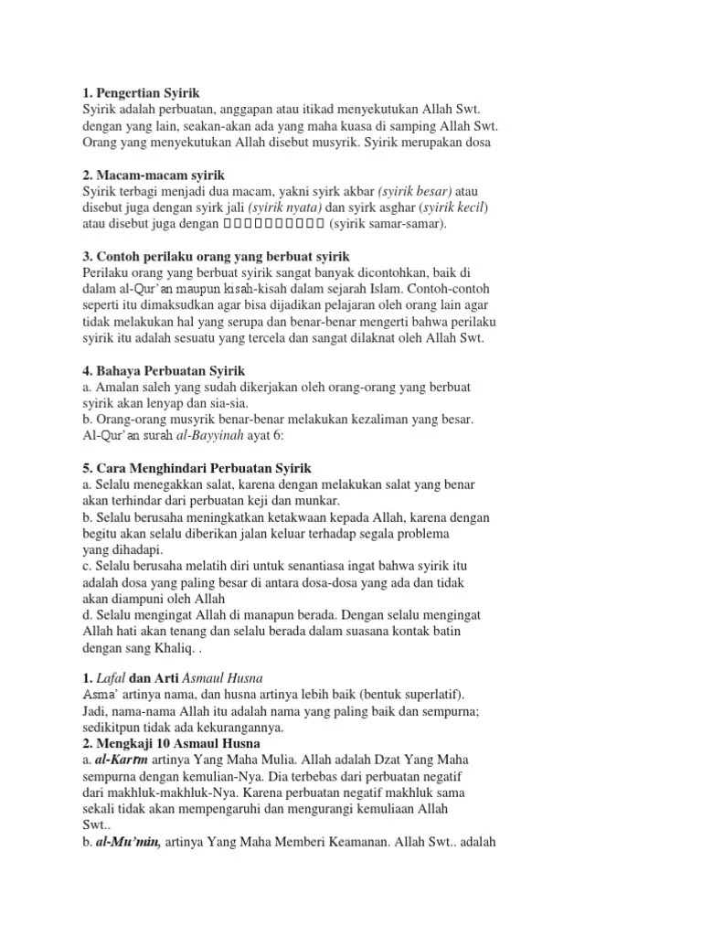 Orang yang menyekutukan allah swt. Sedangkan orang yang melakukannya disebut murtad apostate. Meningkatkan keimanan dan ketakwaan kepada tuhan 18. Jadi syirik ialah perbuatan menyekutukan allah dan musyrik ialah orang yang menyekutukan allah. Bulan safar disebut bulan sial, rasulullah peringatkan bahaya syirik, dianjurkan untuk baca doa ini.